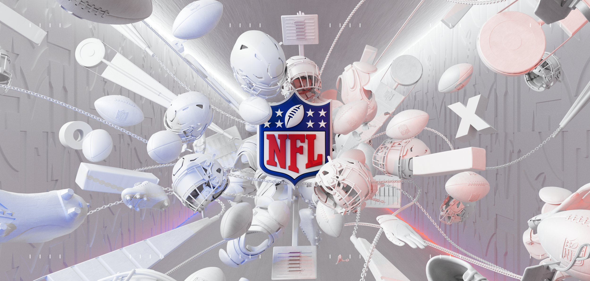 The NFL Lightbox project was a design-focused initiative created specifically for a physical lightbox installation at the NFL’s Los Angeles office. The visuals were crafted using 3D design in Cinema 4D and composited in Photoshop, aiming to enhance the space with bold, dynamic artwork that reflects the NFL’s energy and brand identity.